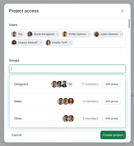 User Groups offer a streamlined solution for Managers and Admins to grant specific access to projects for designated groups of users. When access is assigned, every user within the group receives permissions based on their assigned roles. For instance, if the HR group is granted access to the New User Onboarding project, all users within that group who hold the builder role will have the capability to edit the project and begin sessions.